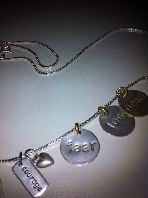Anyhoo. Fearlessness is a term I love. And aspire too. I found it on Mariska Hargitay’s Joyful Heart site. She sells one there that is gorgeous (and you can see her wearing it every week on her show) but last time I looked it was $450. Love the sentiment. Don’t love the price.