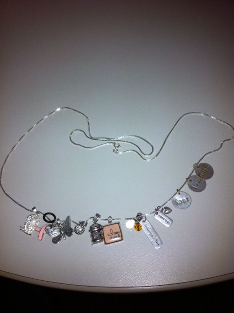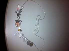 However, there are some drawbacks with charm bracelets. They can be very jingly, which some people at the Gas ‘n Sip would find annoying. (I know I shouldn’t care about that, but there you go.) Also, by being jingly, they can prompt questions from random people; people who don’t need to know what’s going on in my life. People who don’t care, really, about what I’m trying to say with my charms.